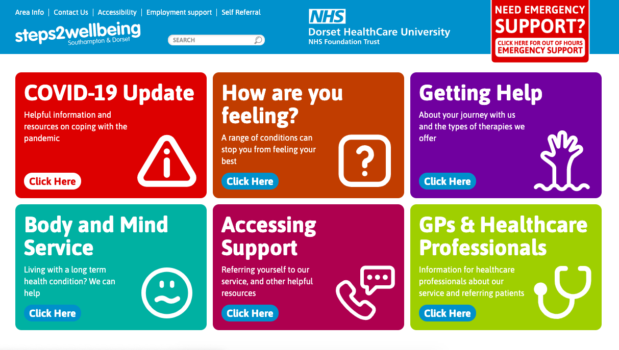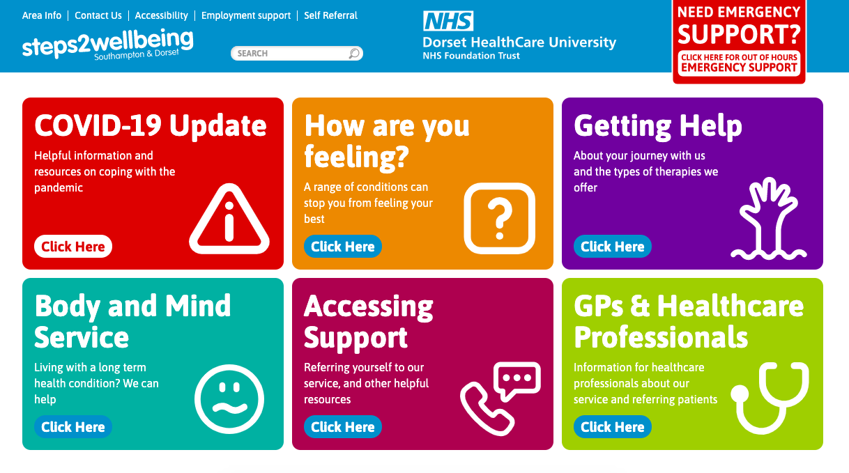 Mental models of Icons (“How are you feeling?”, “Body and Mind Services”) are difficult to recognise the title