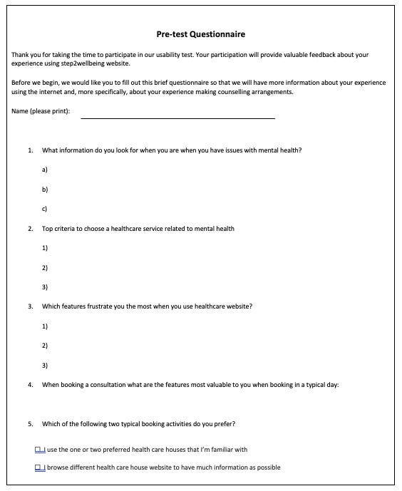 Members won't be permitted to utilize any search functionality to find the information for step2welbeing (that is, no utilization of search engines or external information) The limitation won't express even for first experience with abstaining from affecting the members' activities. In any case, if members need to utilize outside assets, the mediator will advise them that such activity isn't took into consideration of usability test purpose.